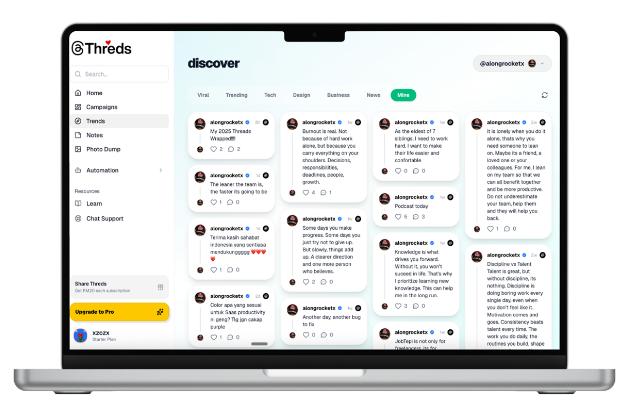 "no cap, this is the best threds tool rn. simple, fast, effective. takyah pening kepala nak fikir content hari2."